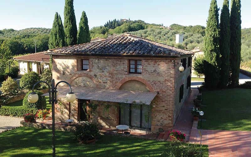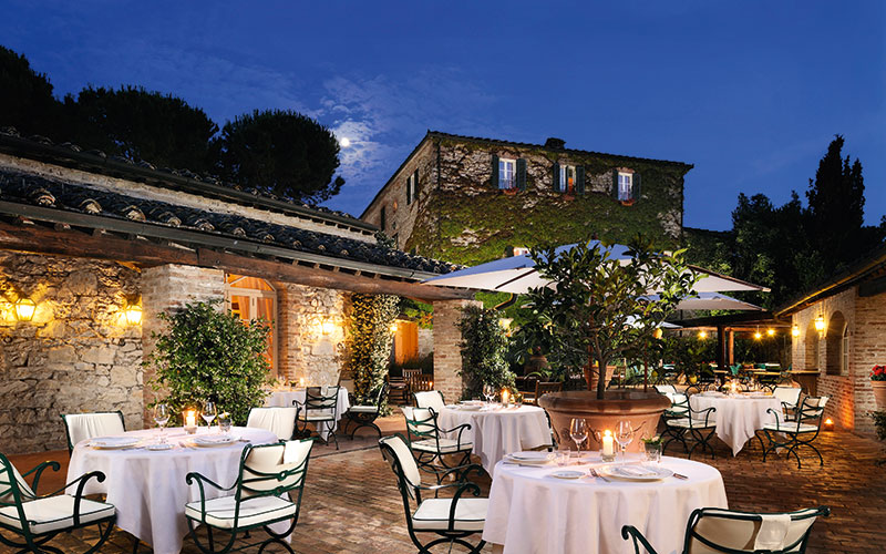 Das ehemalige Kloster ist heute eine romantische Hochzeitslocation. Es bietet einen Rundumblick auf die Hügellandschaft der Toskana, sowie auf das Städtchen San Gimignano.