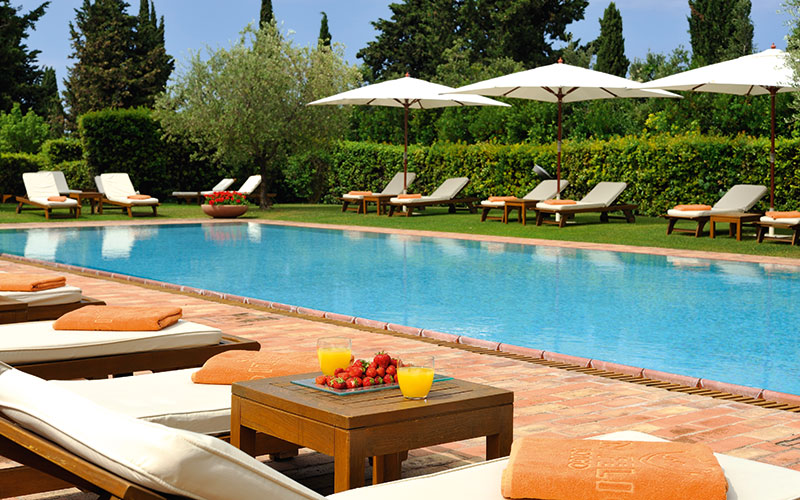 Hotel: Ein exklusives Erstklasshotel der renommierten «Relais & Châteaux»-Kette • ehemaliges Dorf aus dem 8. Jahrhundert • Gourmet-Restaurant Poggio Rosso, geführt von Francesco Bracali – ein echter Toskaner und mit zwei Michelin-Sternen ausgezeichnet • Barbecue-Restaurant • Bar • eigener Weinbetrieb «Agricola San Felice» • geheizter Süsswasser-Pool • Sonnenschirme, Liegestühle und Badetücher am Pool • 2 Tennisplätze • Boccia • Fahrradverleih • Fitnessraum • Wellnessbereich für Massagen und Schönheitsbehandlungen